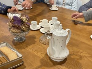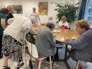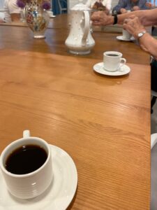 Un aperçu en image d’un moment partagé autour du café d’un dimanche matin à la résidence Séniors Foucaud Gaillac, face au parc.