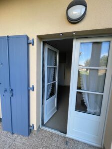 Grand Salon Cuisine équipée, Rez de chaussé, terrasse extérieure, 2 chambres, multiples rangements et placards, Salle de Bain équipée avec douche de plein pied, local de rangement,